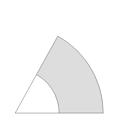O A B P Q (2) 次の図のように,点Oを中心とした2つのおおぎ形があります.おおぎ形Pの面積が,2cm2,OA:AB=1:1のとき,灰色にぬられた部分 Q の面積を求めなさい.